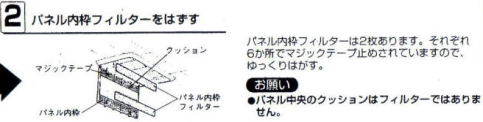 | 交換時期 | フィルターは1ヶ月に1回を目安に掃除を行ってください 約5〜6回のお手入れを目安に交換してください。 |