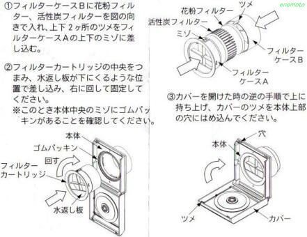 ※フィルターには裏表がありますので、 固い面を手前にしてお取り付けください。 ![]() |