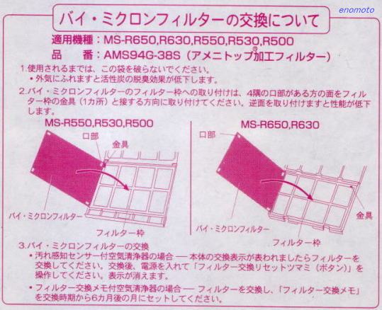| 空気清浄機MSR1000をお使いの方は 「AMS94G-E90」と「AMS92G-E90」と「AMS-82G-E90」を セットでご購入される方が多い品です。 |